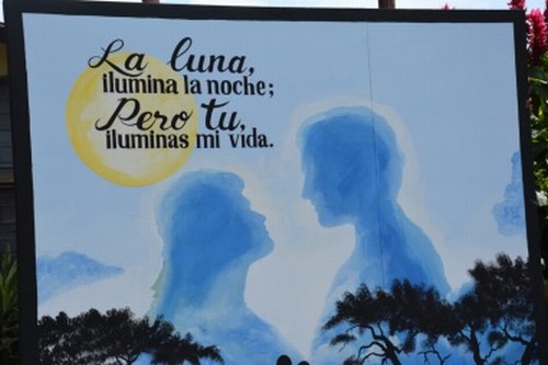 - Q. ..and finally, this very romantic poster (seen on Valentine’s Day) is in a Spanish speaking country in Central America. Bordered by Honduras and Guatemala which country is it?